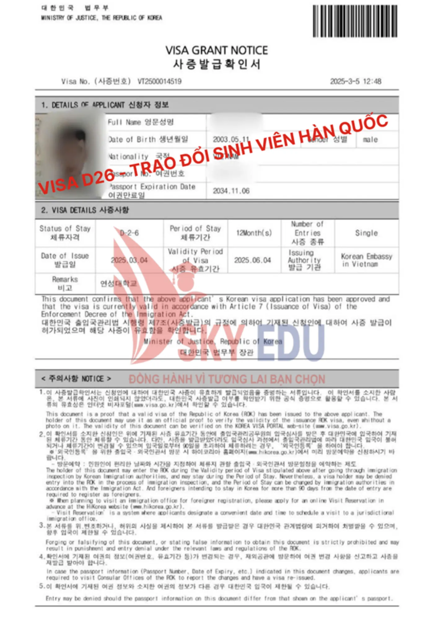 Du học Hàn Quốc chưa bao giờ dễ dàng đến thế với Du học Sky Edu. Trong tháng 3, tất cả các học viên đăng ký chương trình du học Hàn Quốc tại trung tâm đều đã nhận visa và xuất cảnh đúng lịch trình. Đây là thành tựu đáng tự hào, thể hiện sự chuyên nghiệp, tận tâm và kinh nghiệm vững chắc trong việc xử lý hồ sơ của Sky Edu. Chúng tôi hiểu rằng mỗi bộ hồ sơ đều có những thách thức riêng, nhưng với sự chuẩn bị kỹ lưỡng, quy trình chặt chẽ và sự hỗ trợ sát sao từ đội ngũ chuyên gia, Sky Edu đã giúp học viên đạt được kết quả tốt nhất.