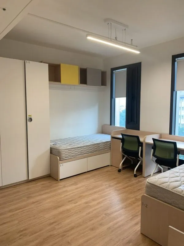 + Nội thất từng phòng đầy đủ tiện nghi, gồm: Giường đơn, bàn học, ghế, tủ sách, tủ quần áo, kệ để giày, phòng tắm, máy sưởi ấm, internet,…