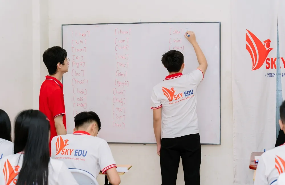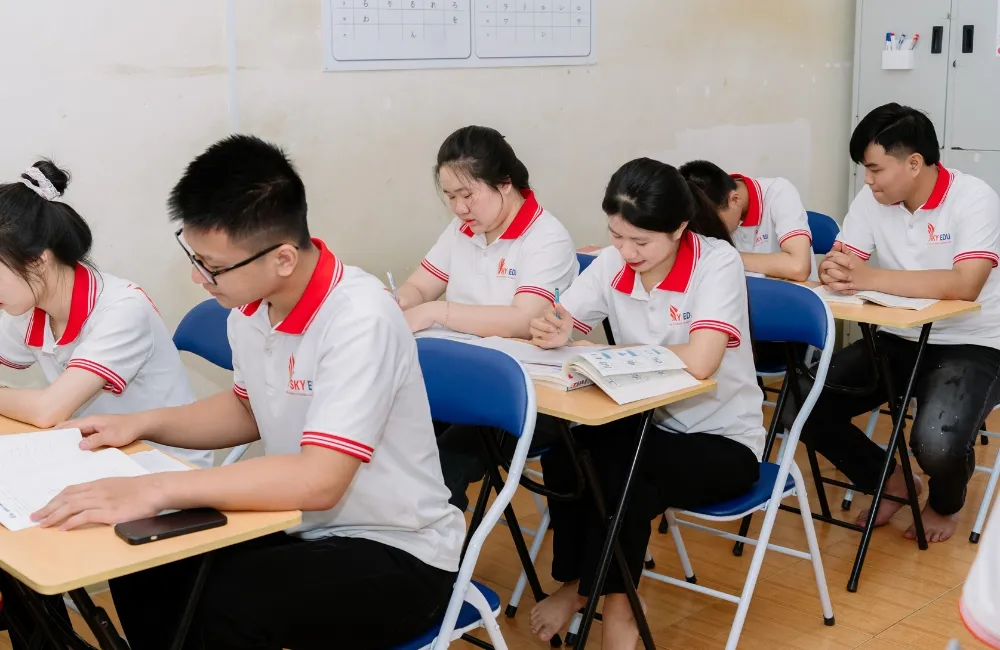 Môi trường học tập tích cực là chìa khóa để học viên đạt được mục tiêu du học. Với cơ sở vật chất hiện đại, phương pháp giảng dạy tiên tiến và đội ngũ giảng viên tận tâm, Sky Edu cam kết đồng hành cùng học viên đến ngày chạm tay vào ước mơ du học quốc tế. Hãy đến trải nghiệm một buổi học thử miễn phí tại Sky Edu để cảm nhận không khí học tập năng động và khởi đầu hành trình du học của bạn ngay hôm nay.