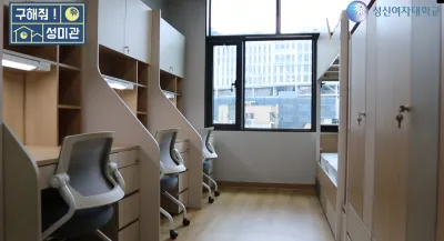 Ký túc xá nữ sinh Sungshin xây dựng có 5 tầng chuyên dụng dành cho cả sinh viên trong nước và ngoài nước, chỉ mất 5 phút đi bộ từ cổng trường vào ký túc xá